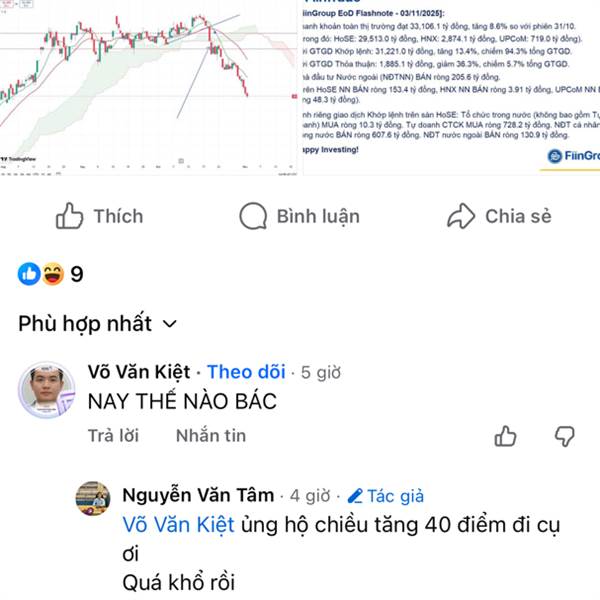 Tin đầu tin hôm nay: Cổ nào trên MA20 khung 4h thì mua Cổ nào giá dưới MA 20 khung 4h chỉ chờ hồi thêm 5-7% để bán. ( không bán thì lại áp lực quay về đáy cũ hoặc đáy 2 cao hơn). Kiểu Như FTS GVR PVS S...Thêm