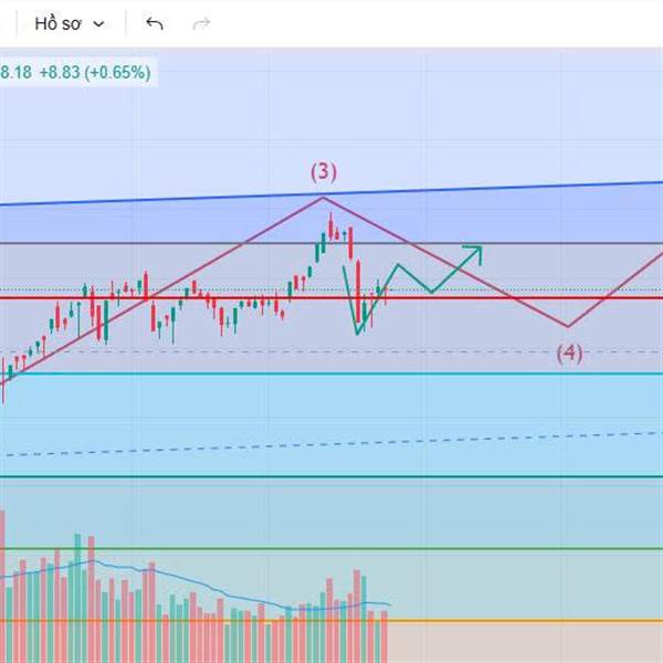 Thị trường đang ở vùng tích lũy giữa sóng 4, với hỗ trợ chính nằm tại 1670 và kháng cự mạnh ngay trên đầu 1750.
