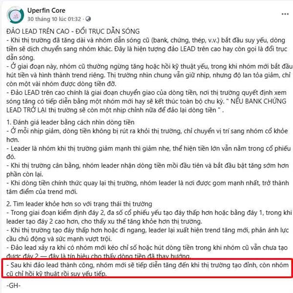 - Khi thị trường đã tăng dài và nhóm dẫn sóng cũ (bank, chứng, thép, v.v.) bắt đầu suy yếu, dòng tiền sẽ dịch chuyển sang nhóm khác. Đây là hiện tượng đảo LEAD trê...Thêm