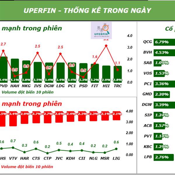- Đúng như quan điểm buổi sáng: nhịp giảm đầu phiên là cơ hội để mua lại nhóm LEAD đã xác nhận tạo trend tăng, chứ không phải tín hiệu gãy xu hướn...Thêm