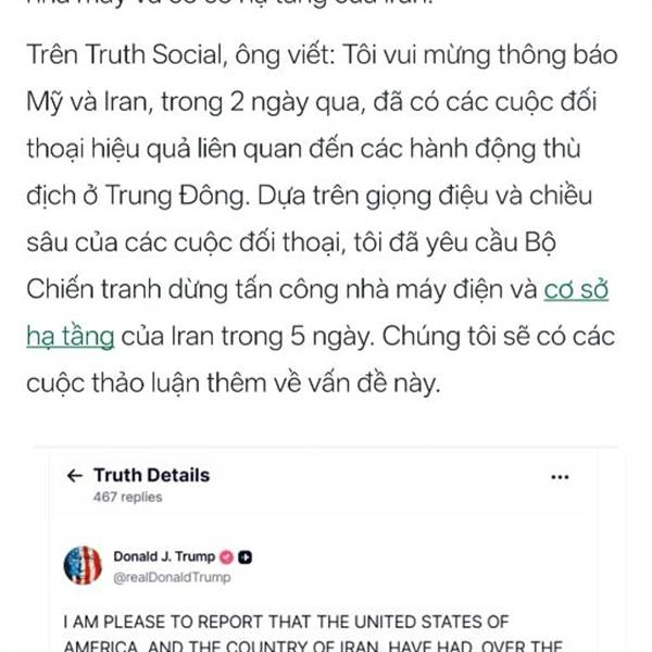 Tổng thống Trump: Mỹ - Iran đồng thuận 15 điểm, sẽ chấm dứt xung đột triệt để