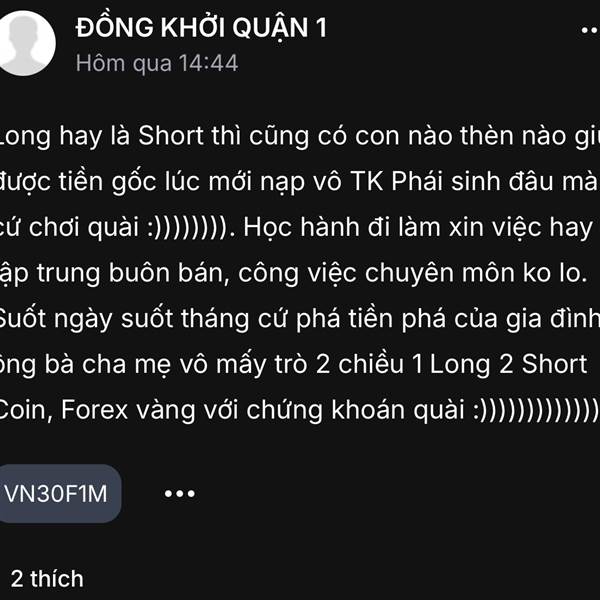 Cũng có thèn nào con nào lãi Phái sinh đâu mà cứ chơi quài :))))))))))))))))))))).