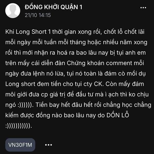 Khi Long Short 1 thời gian xong rồi, chốt lỗ chốt lãi mỗi ngày mỗi tuần mỗi tháng hoặc nhiều năm xong rồi thì mới nhận ra hoá ra bao lâu nay bị tụi anh em trên mấy cái diễn đàn Chứng khoán comment mỗi...Thêm