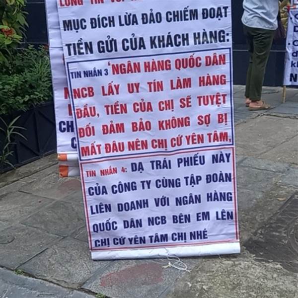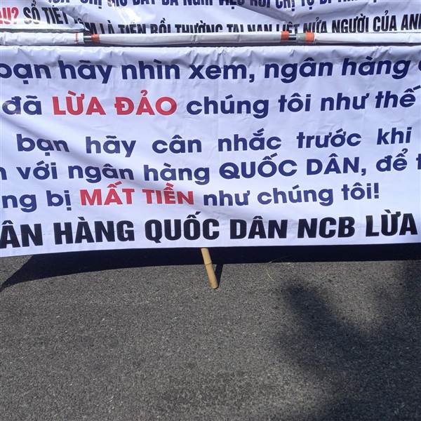 Yêu cầu ngân hàng quốc dân trả tiền mồ hôi nước mắt cho dân chúng tôi.