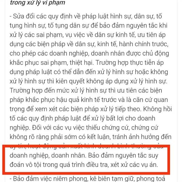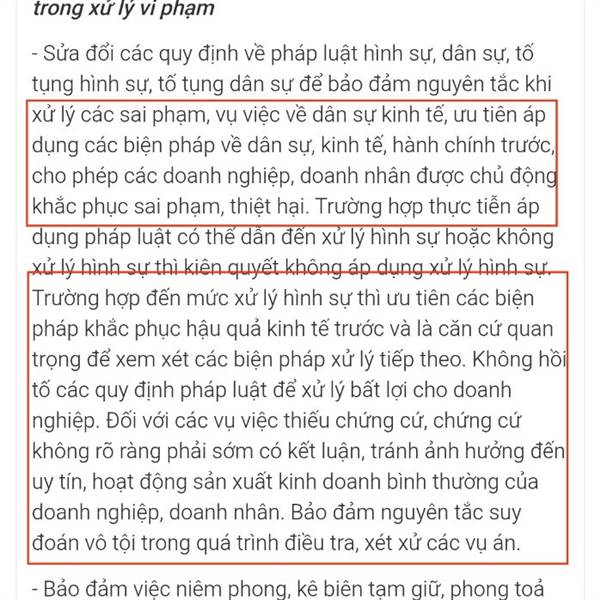 Đây nhé ae, trích nghị quyết 68 về xử lý sai phạm trong kinh doanh. Ưu tiên xử lý kinh tế , hạn chế hình sự nhé. Nếu trường hợp bắt buộc dùng hình sự thì vẫn phải ưu tiên các bạn pháp về kinh tế trước...Thêm