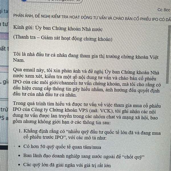 Chiều nay sẽ có email lên ubck về tội đưa thông tin sai sự thật để chào bán ipo cp vck.