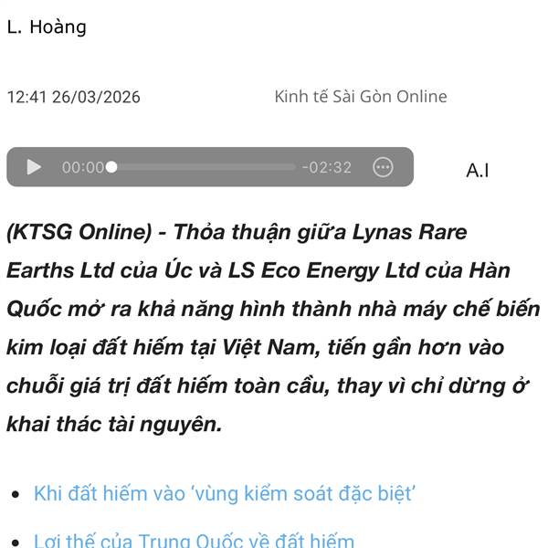 ‘Ông lớn’ Úc và Hàn Quốc bắt tay xây nhà máy tinh chế đất hiếm ở Việt Nam