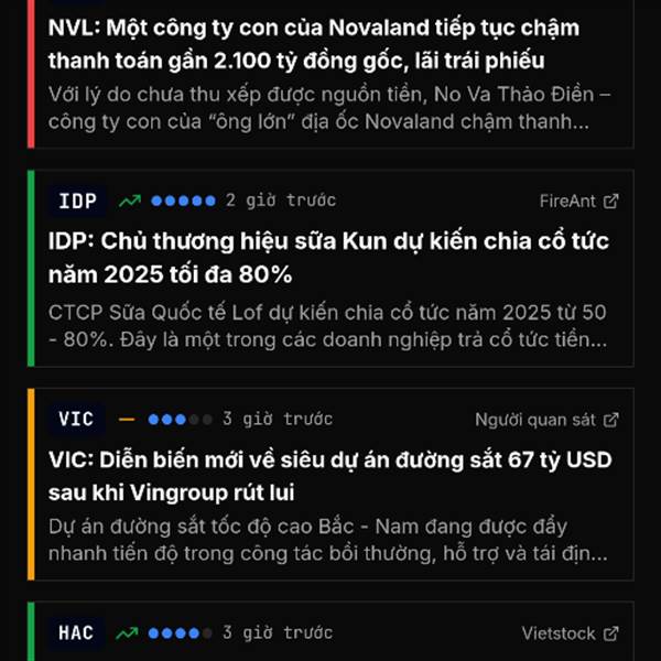 Giới thiệu với các bác app xem bảng giá nhanh, tin tức nhanh, rất tiện để quản trị danh mục và có cả gói chia sẻ watchlist nữa. Xem tại stockos.vn lưu app vào điện thoại cho tiện dùng ạ