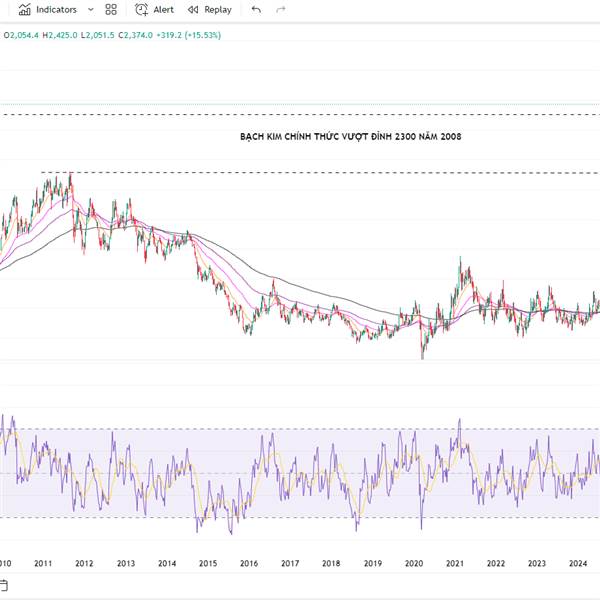 Giá bạch kim đã bứt phá mạnh lên trên vùng 2.400, đạt mức cao nhất kể từ năm 2008, đi kèm chuỗi tăng liên tiếp kéo dài nhất trong nhiều năm cho thấy lực mua đang áp đảo hoàn toàn. Đà tăng này mang tín...Thêm