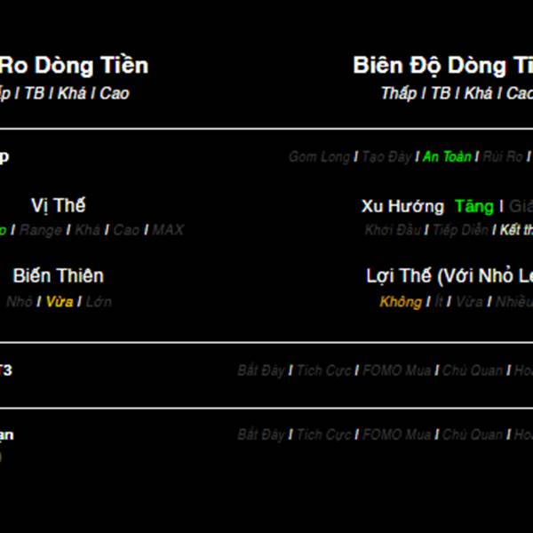 - Chỉ số Score (Dòng tiền NĐT cá nhân): Bias giảm, cải thiện mạnh trong ngày, biến động mạnh.