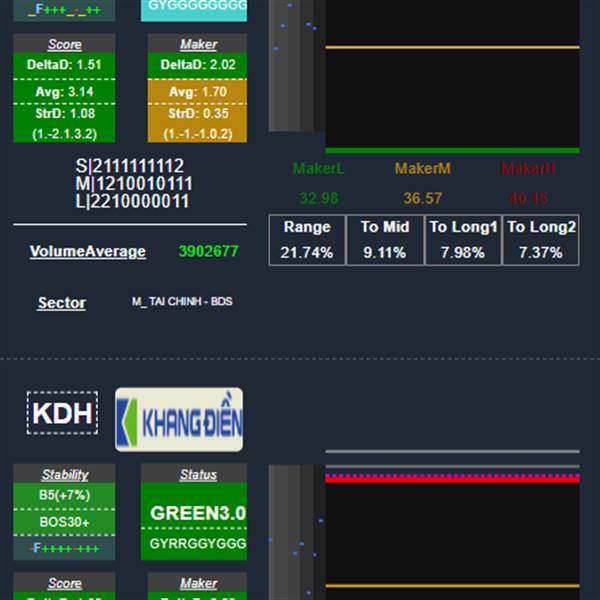 - Trạng thái: YELLOW - Trung tính. KDH chuyển trạng thái sau nhiều phiên hiện RED - pha giảm giá.