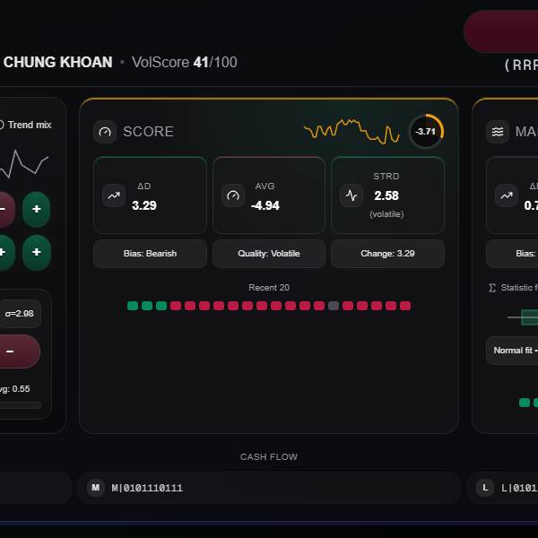 - Chỉ số Score (Dòng tiền NĐT cá nhân): Bias giảm, cải thiện nhẹ trong ngày, biến động mạnh.