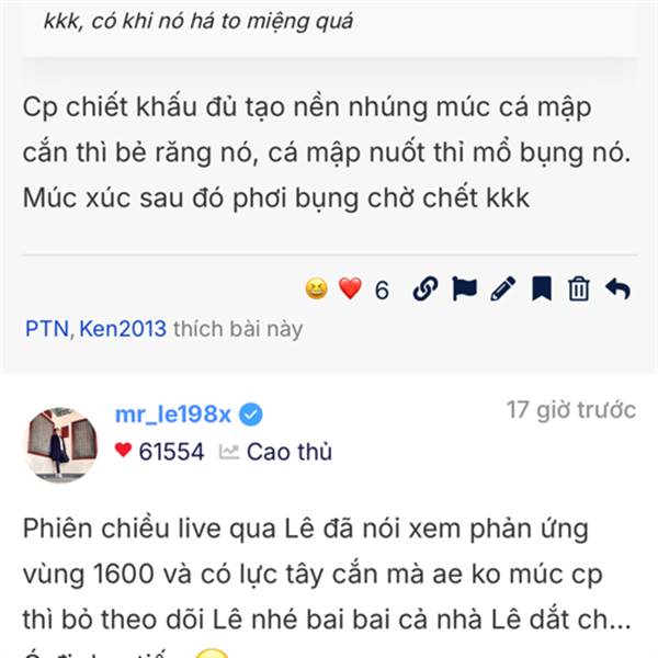 Chúc mừng ae những người mua đúng điểm và đóng bảng điện bớt soi chart để ko bán non. Cảm ơn ae đã khuyên chân tình rủi ro vì có rủi ro thì mới ăn no -)). Hàng về tk đã lâu đã có bộ đệm rủi ro giờ thì n...Thêm