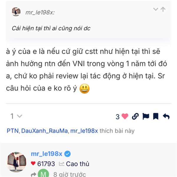 Cầm dc cp mua đúng thời điểm ko bị lay động theo media ko thôi cũng là đã thành công rồi. Mua mua bán bán liên tục thực sự ko tạo nên lợi nhuận bền vững đâu -)) Cuộc chơi là zero sum thì tiền cũng chỉ c...Thêm