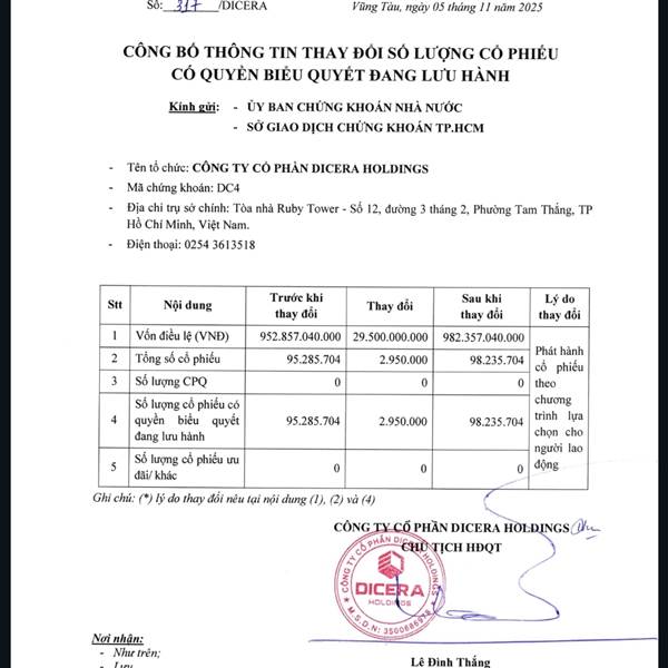 DC4 nên tăng thêm 1 ít Vốn điều lệ thông qua chia cổ tức để đạt được Vốn trên 1000 tỷ đồng