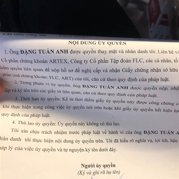 Em ở Hà Nội có nhận ủy quyền làm giấy chứng nhận sở hữu cổ phần của cổ phiếu họ FLC nhé, bác nào không thể đến trực tiếp Artex làm được thì có thể liên hệ em.