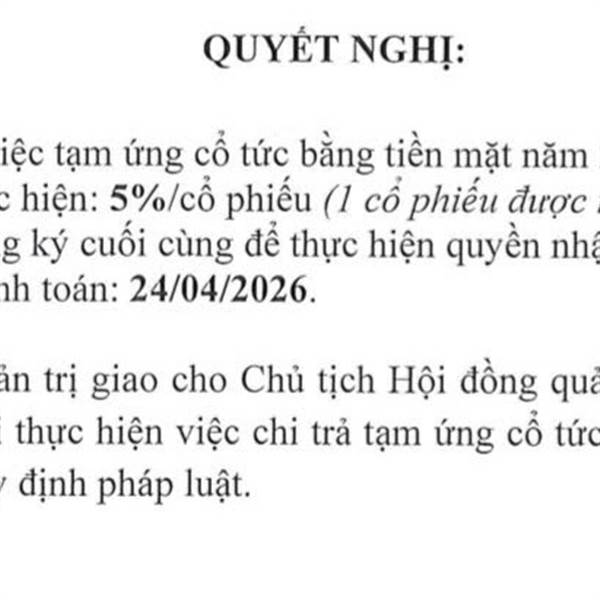 Cổ tức 2025 : 20% , 2026 : 12%