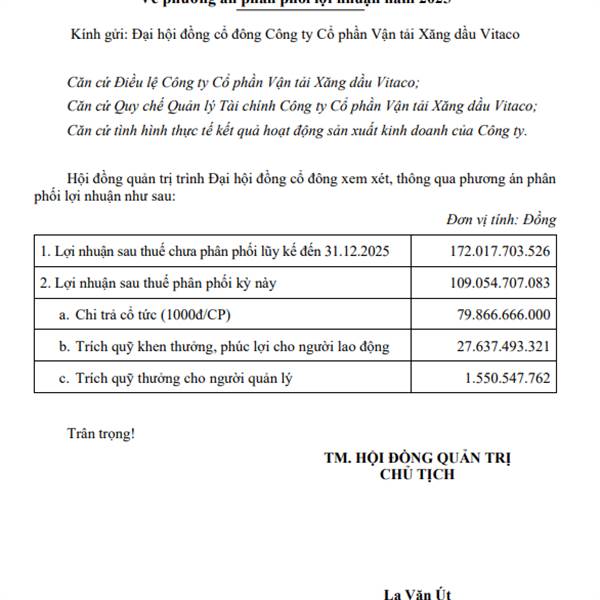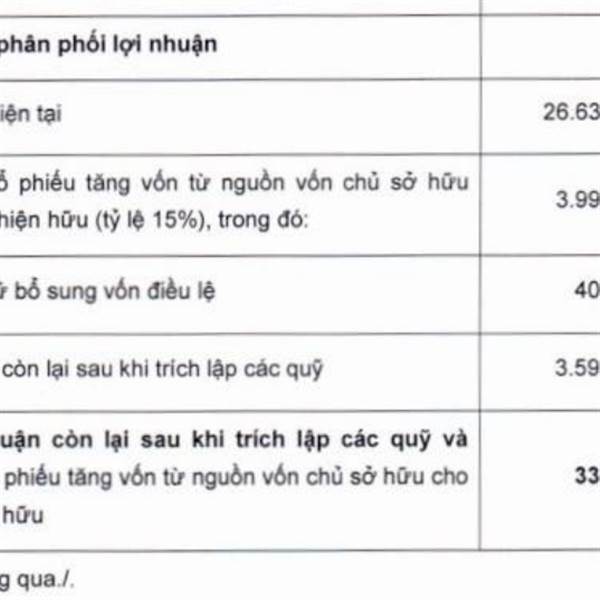 Trình: Phát hành cổ phiếu tăng vốn từ nguồn vốn chủ sở hữu cho cổ đông hiện hữu (tỷ lệ 15%),