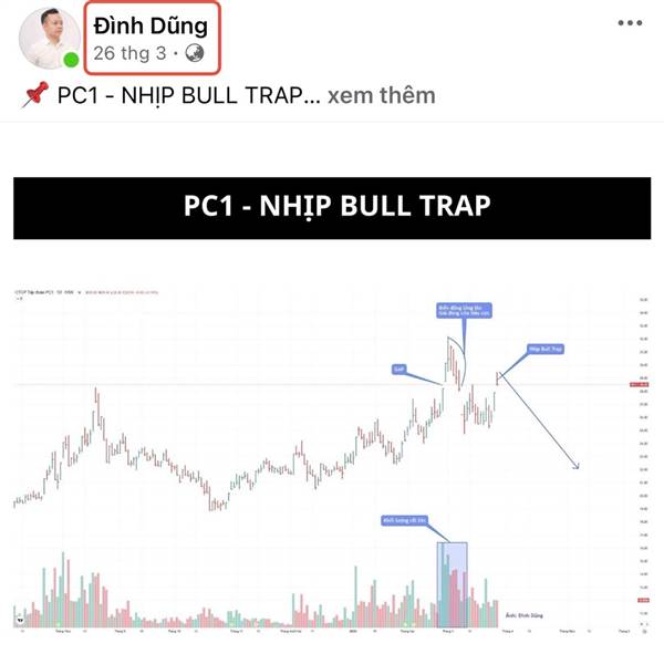 PC1 đã đạt đỉnh hồi đầu tháng 3/2026 Nhịp kéo tăng giá các phiên gần đây là nhịp Bull Trap (bẫy tăng giá) Sau khi cổ phiếu đạt đỉnh, trên đường giảm giá, luôn xuất hiện các nhịp B...Thêm