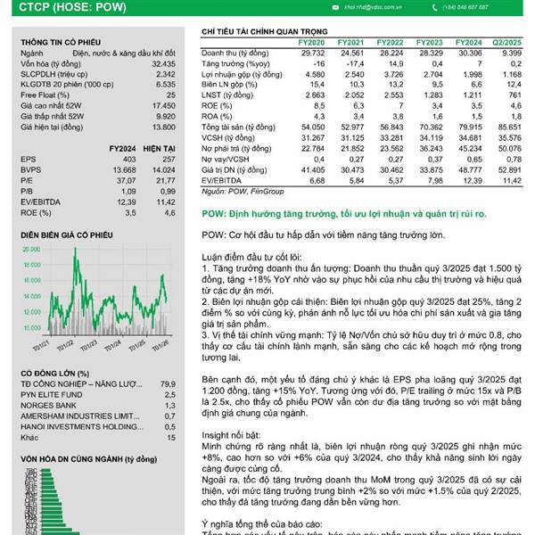 🔹 Khuyến nghị: MUA POW tại vùng giá 13.000 – 14.000 đồng/cp POW đang giao dịch ở vùng tích lũy khá sâu so với vùng đỉnh, định giá hấp dẫn với tiềm năng tăng trưởng dài hạn. Biên lợi nhuận cải thiện, d...Thêm