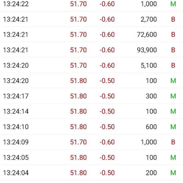 2 lệnh bán mỗi lệnh 100.000cp giá 51.70 mà có lực đở hết. Ai đở mua anh em. Vậy anh em mơ về dưới 5x nổi không?