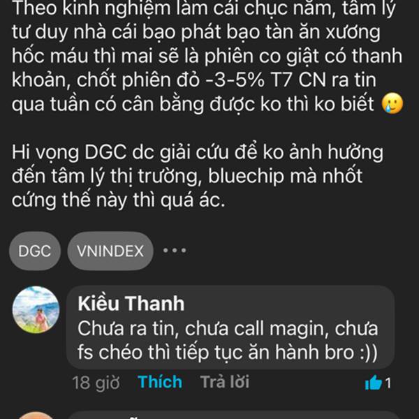 Theo kinh nghiệm làm cái chục năm, tâm lý tư duy nhà cái bạo phát bạo tàn ăn xương hốc máu thì mai sẽ là phiên co giật có thanh khoản, chốt phiên đỏ -3-5% T7 CN ra tin qua tuần có cân bằng được ko thì...Thêm