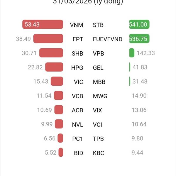 Một NH được tự doanh mua ròng 541ty phiên 31/3.