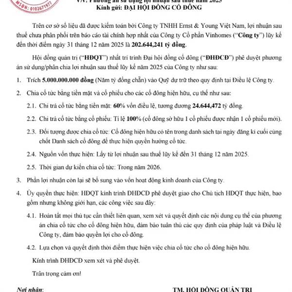 SL cổ phiếu tuy nhiều nhưng trên 90% thuộc tổ chức và CD lớn. VHM đã dự trình DHCD (21/04) KH 250k tỷ, LNST 5...Thêm