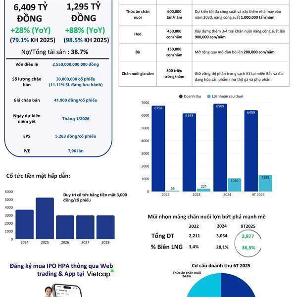 * Lợi nhuận nửa đầu năm 2025 tăng 41.7%: Doanh thu 6T2025 giảm nhẹ 3.4% svck đạt 5,863 tỷ. Tuy nhiên lợi nhuận tăng mạnh 41.7% đạt ...Thêm