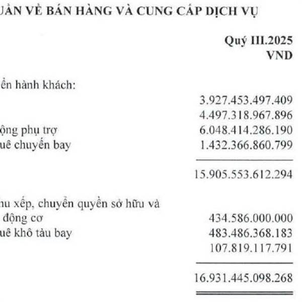 Cập nhật sơ BCTC Q3/2025 của VJC: