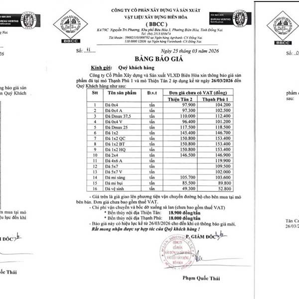 VLB tăng toàn bộ giá đá lên 10k, khả năng tăng theo giá dầu. Nói chung là dầu ko ảnh hưởng tới VLB, mọi thứ đều quy thành giá bán.