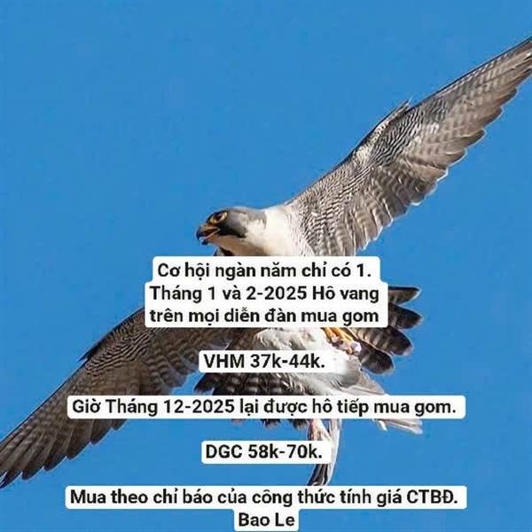 Cơ hội ngàn năm chỉ có 1. Tháng 1 và 2-2025 Hô vang trên mọi diễn đàn mua gom. VHM 37k-44k. T12-2025 lại được hô tiếp mua gom. DGC 58k-70k. Mua theo chỉ báo của CTBĐ.
