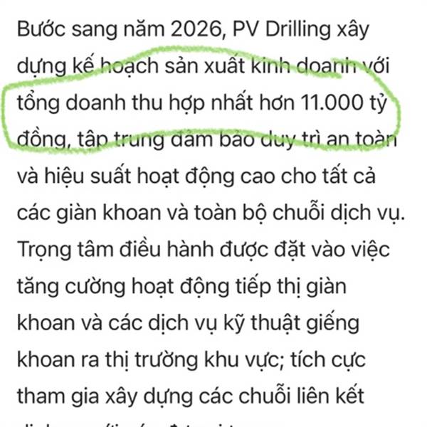 Kế hoạch doanh thu PVD năm 2026 khoảng 11.000 tỷ vậy thì sang năm 2026 doanh thu khoảng 14.500 - 15.000 tỷ. Lợi nhuận khoảng 1400-1600 tỷ do biên lợi nhuận sẽ cao hơn vì sao các bác tìm hiểu thêm nhé....Thêm