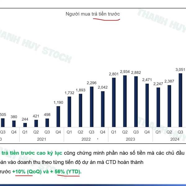 Trong 5-6 quý gần đây thì hầu như doanh thu của quý sau gần bằng gấp đôi hoặc hơn gấp đôi cái khoản người mua trả tiền trước của quý trước. Mà quý 1/2026 ctd có khoản người mua trả tiền trước đên 5,3k...Thêm