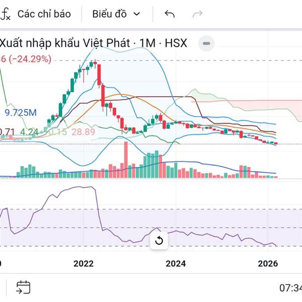 Con ẻm hoa hậu một thời giờ tàn tạ quá.từ đỉnh nóc 52k về 4k.con này qua tháng mới có thể xem xét được khi RSI tháng của nó đang xuống chạm vùng quá bán.