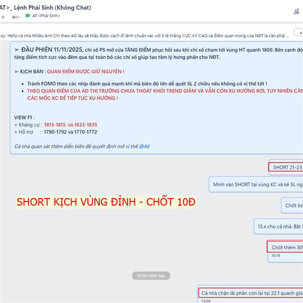 💥 💥 💥 CHỨNG KHOÁN A.T.S 14/11/2025 : 2 LỆNH SHORT HOÀN MỸ TẠI CÁC VỊ TH...