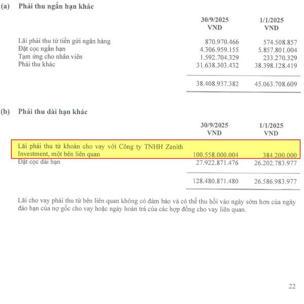 MML có 133 tỷ tiền lãi từ cho vay với Zenith Investment / 1 năm thì cuối năm thu về luôn không anh em nhỉ