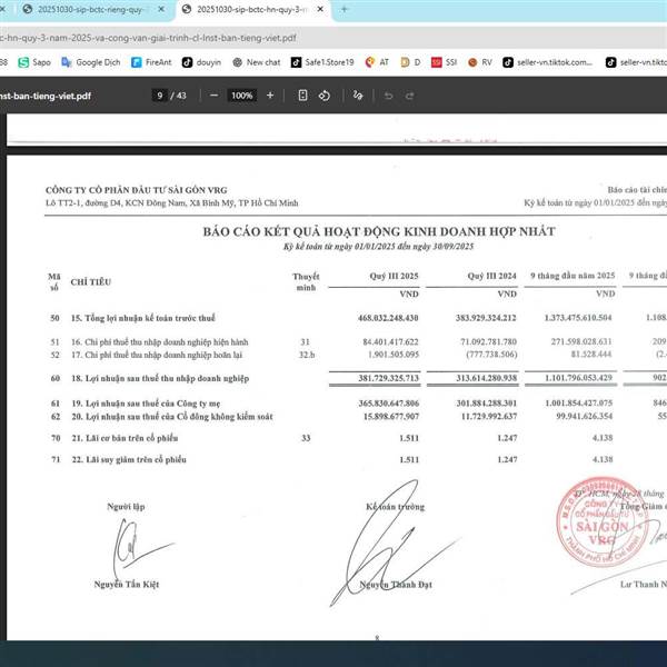 Có KQKD sơ bộ Q3 rồi. Mời các cụ thẩm định