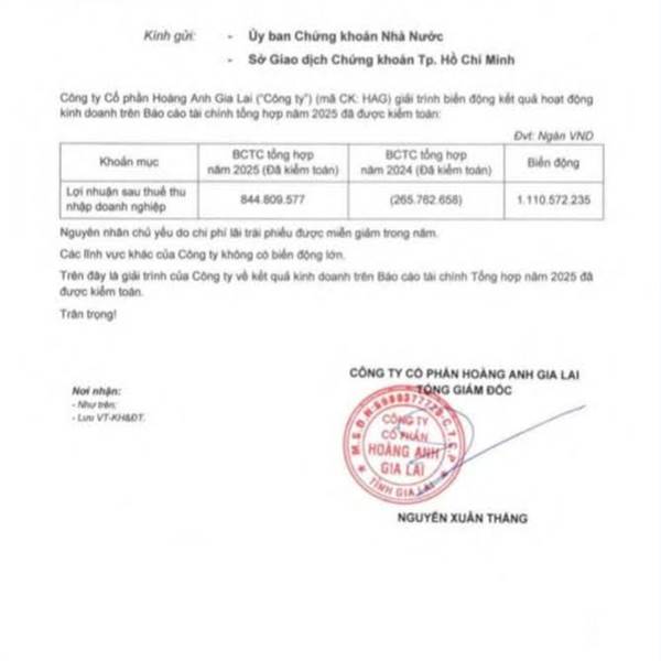 Công ty Cổ phần Hoàng Anh Gia Lai công bố Nghị quyết HĐQT về ngày đăng ký cuối cùng để thực hiện quyền tham dự họp ĐHĐCĐ thường niên năm 2026 như sau: