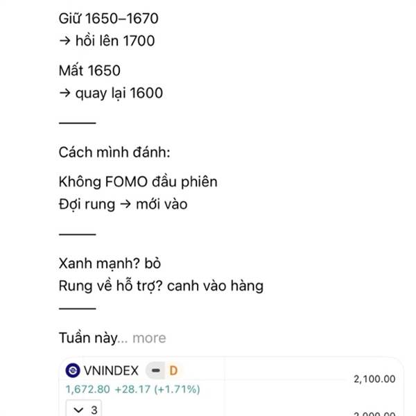 → giữ được thì lên 1700