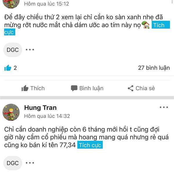 Chỉ cần doanh nghiệp còn 6 tháng mới hồi t cũng đợi giờ này cầm cổ phiếu mà hoang mang quá nhưng rẻ quá cũng ko bán kí tên 77,34
