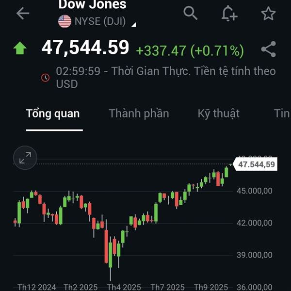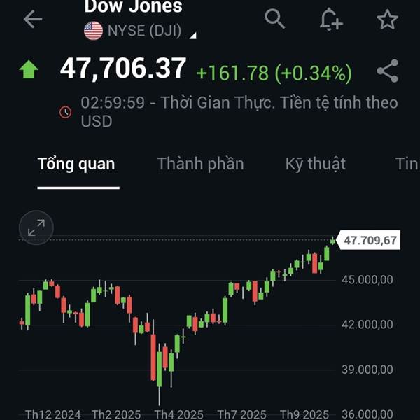 Sau một phiên giao dịch lập đỉnh lịch sử, DJ quay đầu giảm 273đ(-0.59%). Mức giảm nhẹ nhàng này nhờ lực đỡ của các cổ phiếu công nghệ Apple, Microsoft, Nvidia. Cũng chính nhờ nhóm này đã giúp Nasdaq t...Thêm