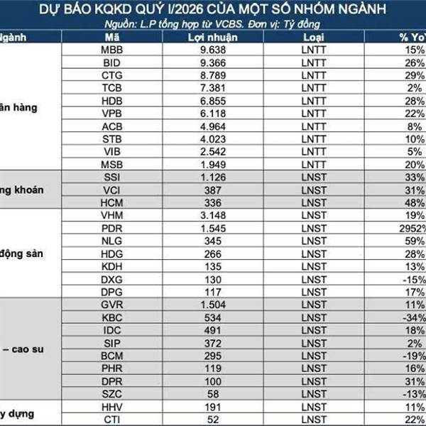 1. Thế Giới Di Động (MWG): Dự báo lợi nhuận sau thuế đạt 2.250 tỷ đồng (tăng 45% so với cùng kỳ và 8% so với quý trước). Nếu đạt mức này, đây sẽ là mức lợi nhuận cao nhất trong lịch sử một quý của MWG...Thêm