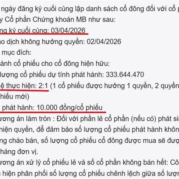 CTCP Chứng khoán MB (mã MBS) vừa thông báo chào bán ra công chúng hơn 333,6 triệu cổ phiếu với giá 10.000 đồng/cp (thấp hơn 58% giá hiện hành), dự kiến huy động hơn 3.336 tỷ đồng. Thời gian nhận đăng ...Thêm