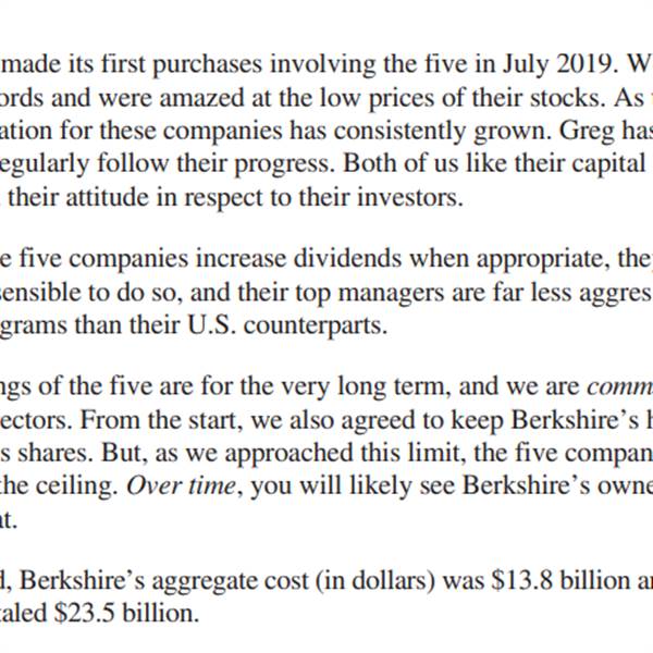 CỤ BUFF KIẾM 9,7 TỶ ĐÔ SAU 6 NĂM GOM MUA 5 CÔNG TY NHẬT BẢN Bên dưới là đoạn trích (đã dịch) từ bức thư (15 trang) cụ viết vào tháng 2/2025 gửi cổ đông Berkshire: