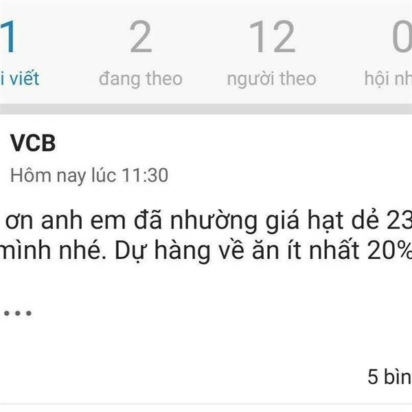 Cám ơn anh em đã nhường giá hạt dẻ 23.25 cho mình nhé. Dự hàng về ăn ít nhất 20%