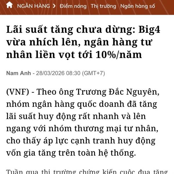 Big4 cũng phải nhích theo, ngân hàng tư nhân chạm mốc 10%/năm.