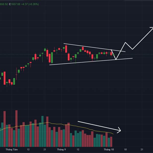 📈Cả nhà có thể thấy rất rõ là biên độ biến động của VNINDEX được thu hẹp và khối lượng giảm mạnh ở đoạn này. Cho thấy thị trường đang tương đối thận trọng trước yếu tố thông tin.