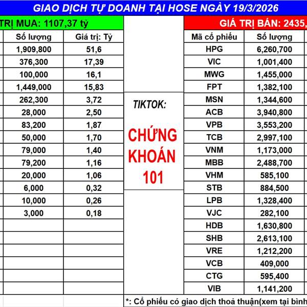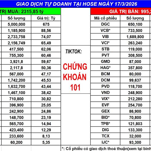 Ngày 17/3/2025 tự doanh MUA ròng: 1320.59 tỷ (bao gồm khớp lệnh và thỏa thuận)