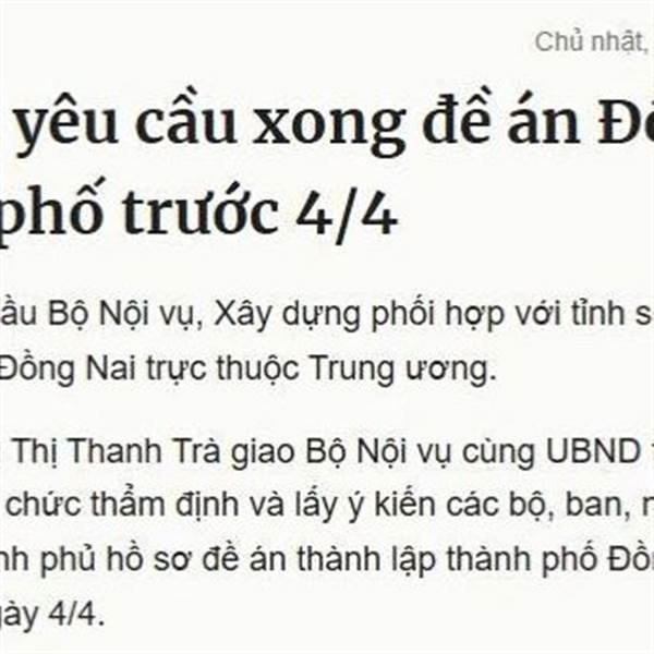 Trong lộ trình hướng tới mục tiêu trở thành thành phố trực thuộc Trung ương, UBND tỉnh Đồng Nai đã thành lập Tổ soạn thảo Đề án xây dựng thành phố Đồng Nai trực thuộc Trung ương.